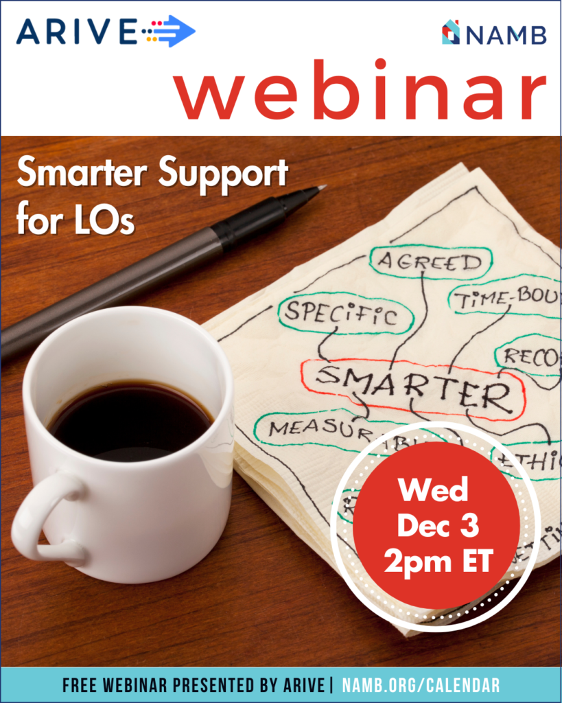 Join NAMB and ARIVE for an informative webinar, “Smarter Support for LOs: Inside ARIVE’s All-in-One Experience“, on December 3, 2025 at 2:00 pm ET.