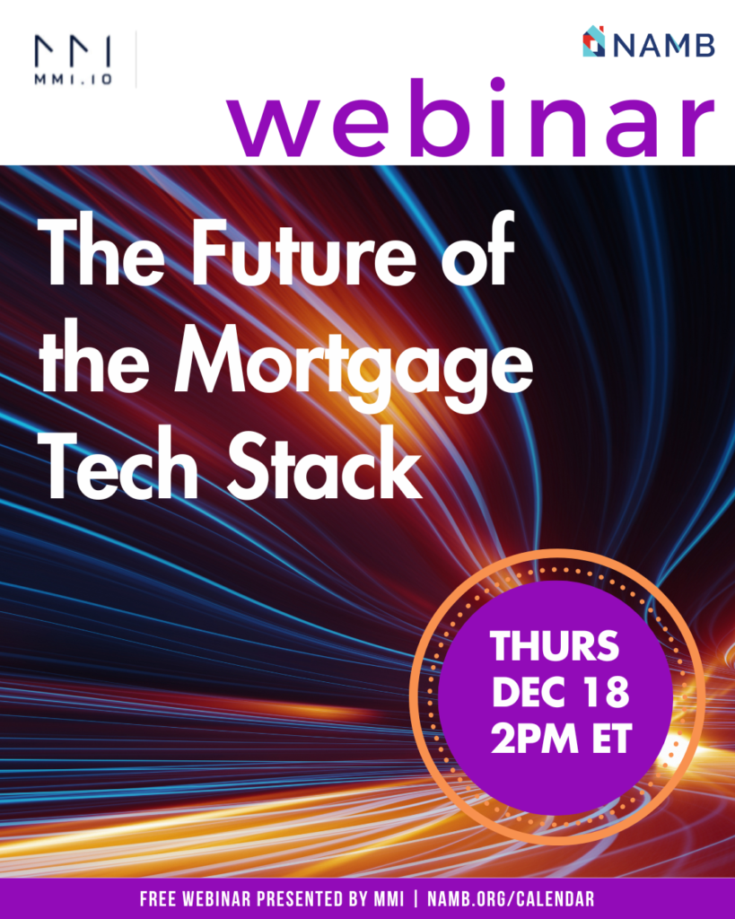 Join NAMB and MMI.io for an informative webinar, “The Future of the Mortgage Tech Stack”, on December 18, 2025 at 2:00 pm ET.