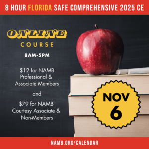 RegisterDate: November 6, 2025 Time: 8 am – 5pm ET Cost: $79 for non-members Location: Via Zoom This classroom course, 8 Hour Florida SAFE Comprehensive 2025 CE, satisfies the 8 hours of 2025 annual continuing education required of individuals maintaining a state-issued mortgage loan originator (MLO) license. Within this course, students will spend time reviewing required…